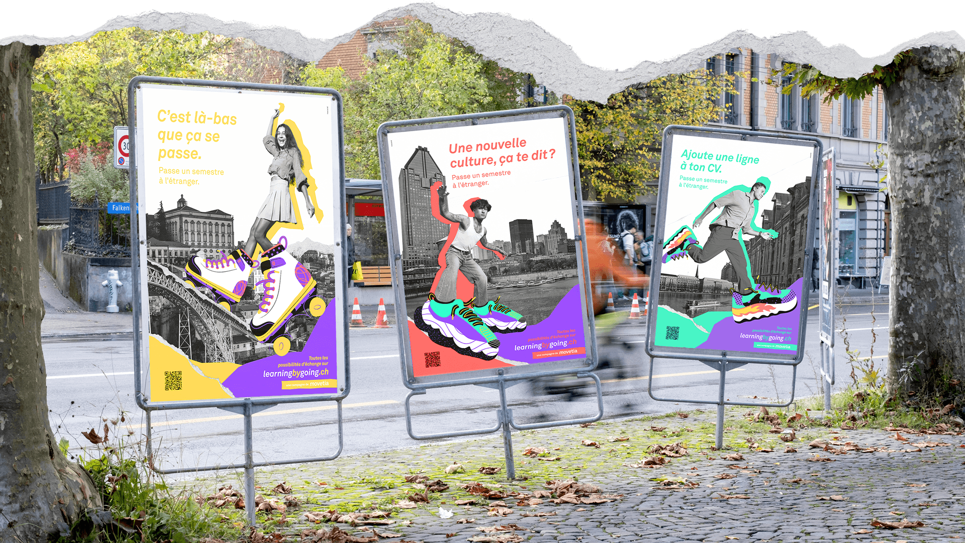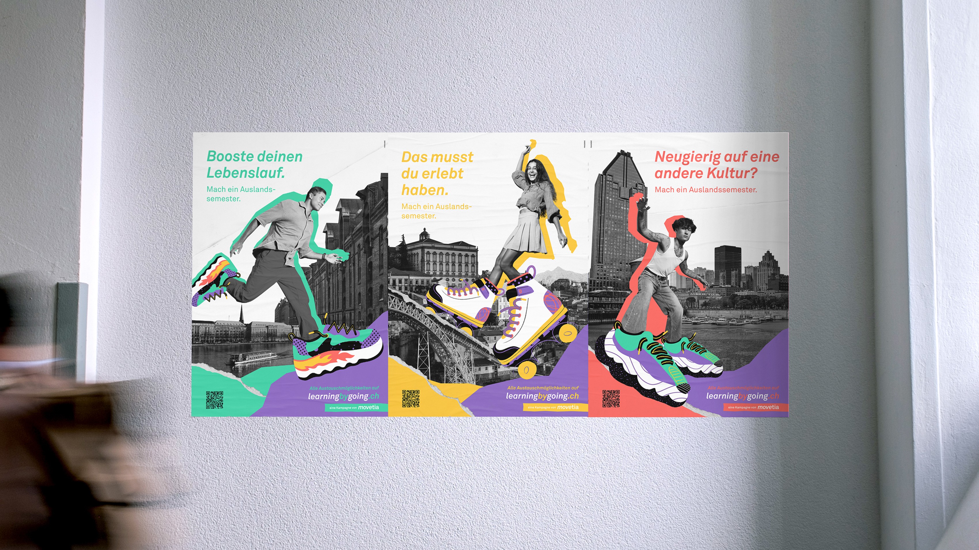 The Movetia sneakers give students superpowers. They take them to new cities and countries: three well-known influencers spread the new campaign across Switzerland, trilingual and fully networked. The 360° rollout is completed with POS posters, flyers, and empowering giveaways at universities and colleges nationwide.